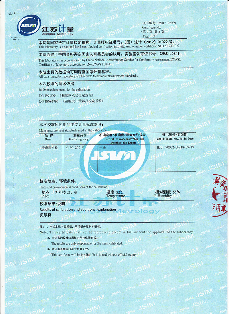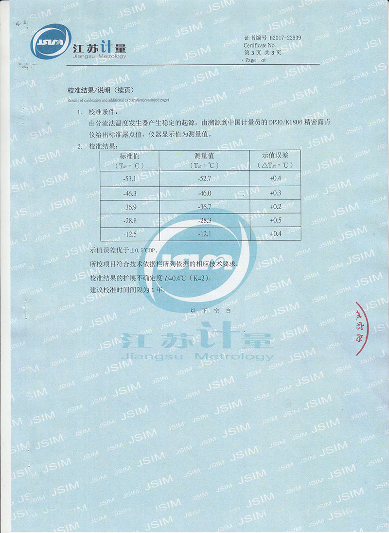 露點測量范圍 ―60℃ — +20℃