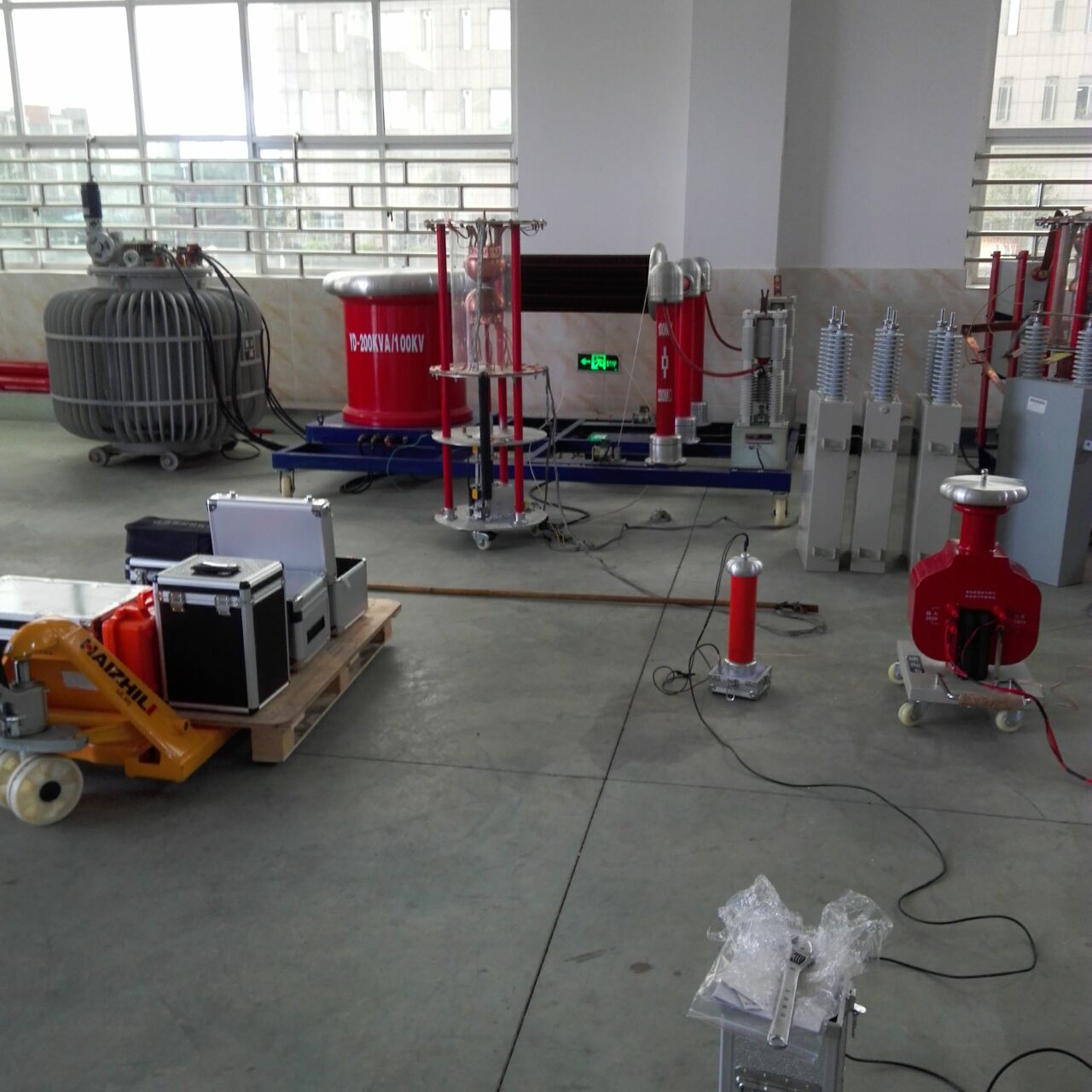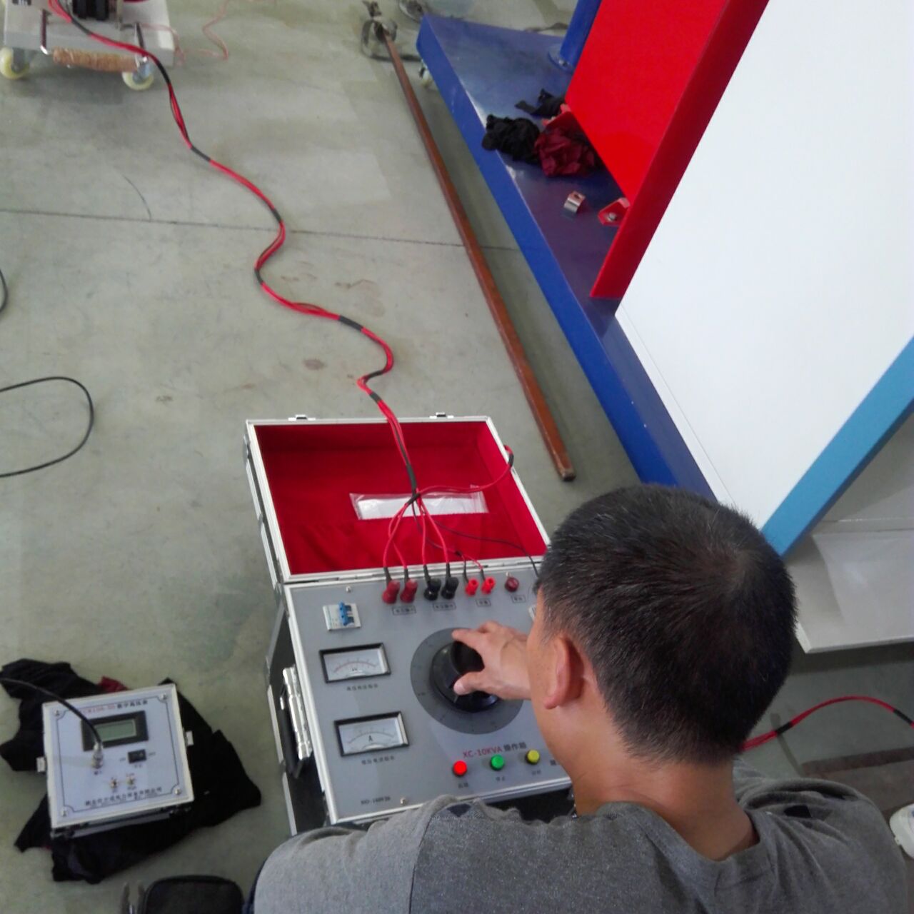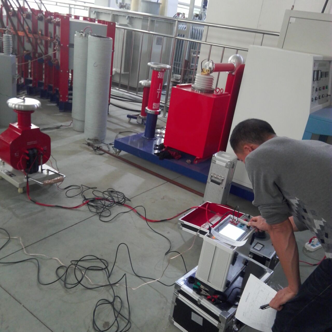 李工首先對設備的原理和功能進行了全面而細致的講解。特別是我公司生產的干式試驗變壓器,利用先進的生產設備,采用線圈繞組環氧真空澆注及CD型鐵芯的新工藝,和同類產品油浸式變壓器相比,明顯地降低重量,減少體積,在質量上提高了絕緣強度和抗濕程度,并有效地削弱了漏磁而大大加強了變壓器承受試驗短路電流的沖擊能力。