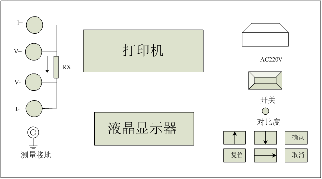8、 顯示器:大屏幕彩色液晶顯示器,顯示菜單、電流值、電阻值及輔助信息等。