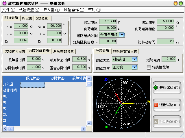 合閘延時:模擬斷路器的合閘動作時間,測試儀根據開入量的連接,一旦接受到保護的合閘信號,經過“合閘延時”后,方進入合閘后的電壓電流狀態。